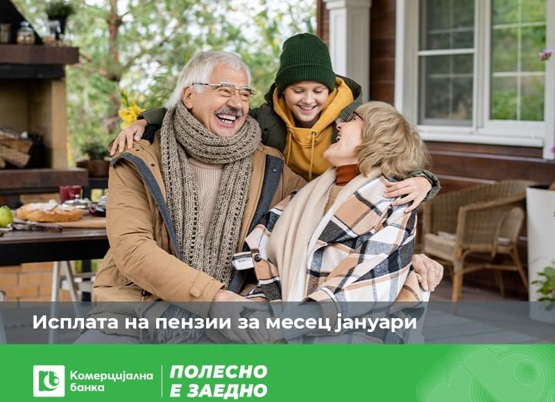 Комерцијална банка информира дека исплатата на пензиите започнува од петок, 30 јануари.