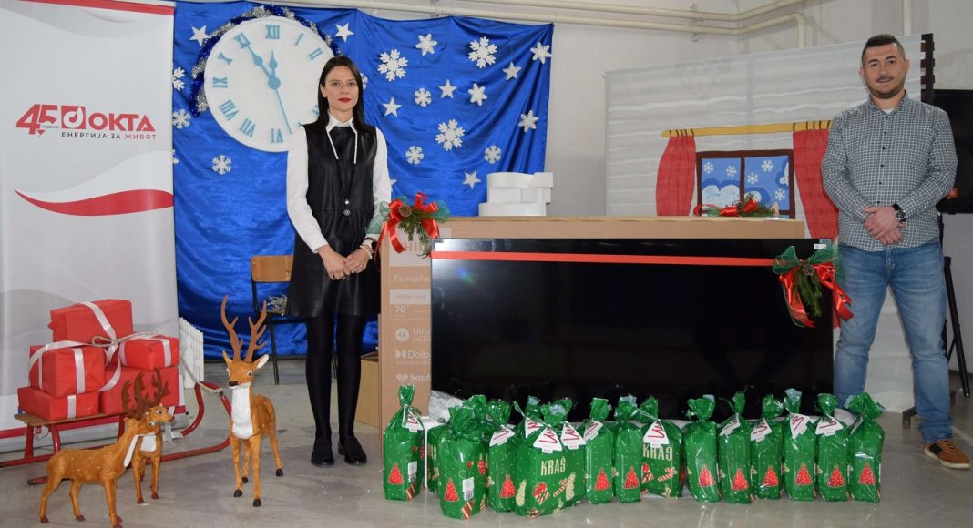 Во пресрет на новогодишните празници, ОКТА ја продолжи традицијата на донирање пакетчиња за децата од основните училишта кои се наоѓаат во близина на седиштето на компанијата во општина Илинден. Со цел унапредување на образовниот процес и поефикасно следење на наставните содржини, покрај новогодишните пакетчиња, оваа година компанијата донираше и телевизори намени за централното општинско основно училиште „Браќа Миладиновци“ во Миладиновци, како и во двете подрачни училишта лоцирани во селата Мршевци и Текија во општина Илинден.