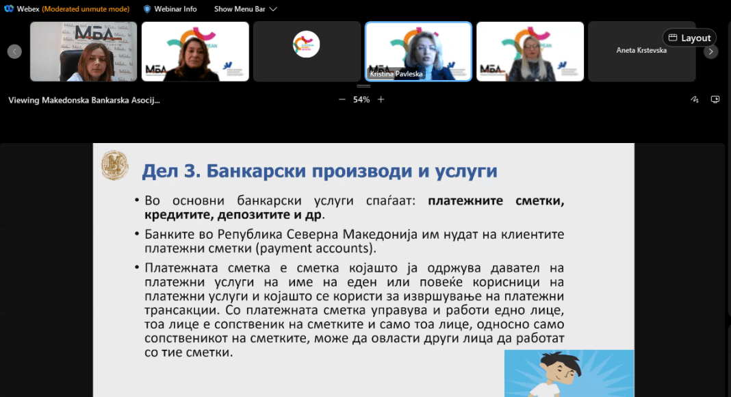 Денес Македонската банкарска асоцијација во соработка со Народната банка и Комисијата за хартии од вредност одржа виртуелен настан на кој пријавените ученици и нивните ментори беа запознати со текот на овогодинешниот национален и финален натпревар на Европскиот квиз на пари. Нашата земја по петти пат е дел од овој значаен проект на Европската банкарска федерација, наменет за финансиска едукација на учениците од 13 до 15 години. На работната средба менторите од 84 основни и средни училишта од нашата земја, најмногу досега, и нивните ученици од 177 класови беа запознаени со сите аспекти на натпреварот.
