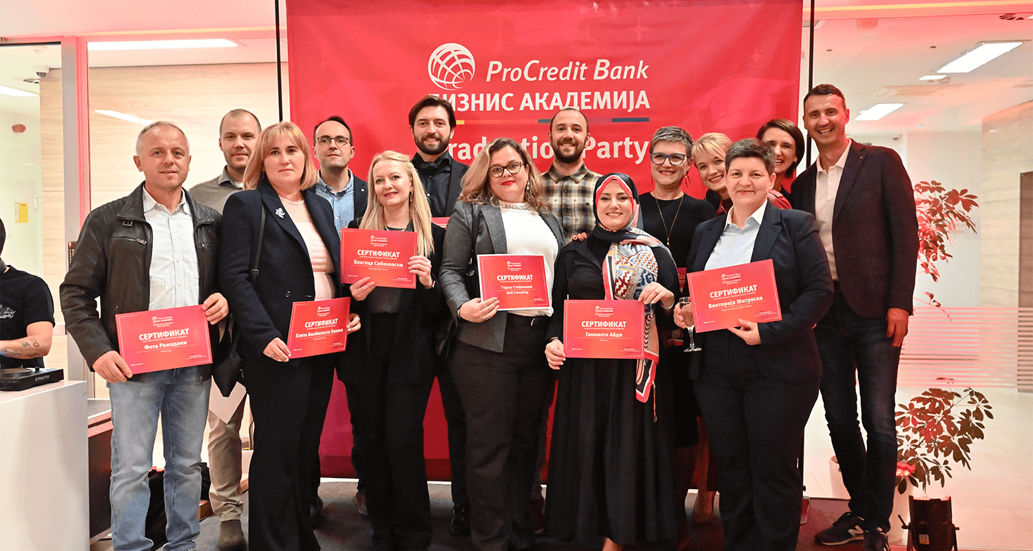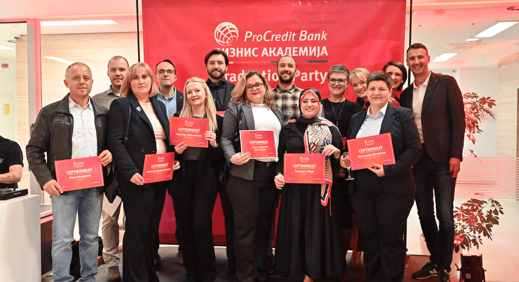 Со свечена церемонија и завршен коктел, ПроКредит Банка ја заокружи првата генерација од ПроКредит Бизнис Академијата– едукативна програма создадена за унапредување на знаењата и капацитетите на локалните компании. На настанот, 90 учесниците добија сертификати за успешно завршена обука и посветеност во процесот на учење и личен развој.