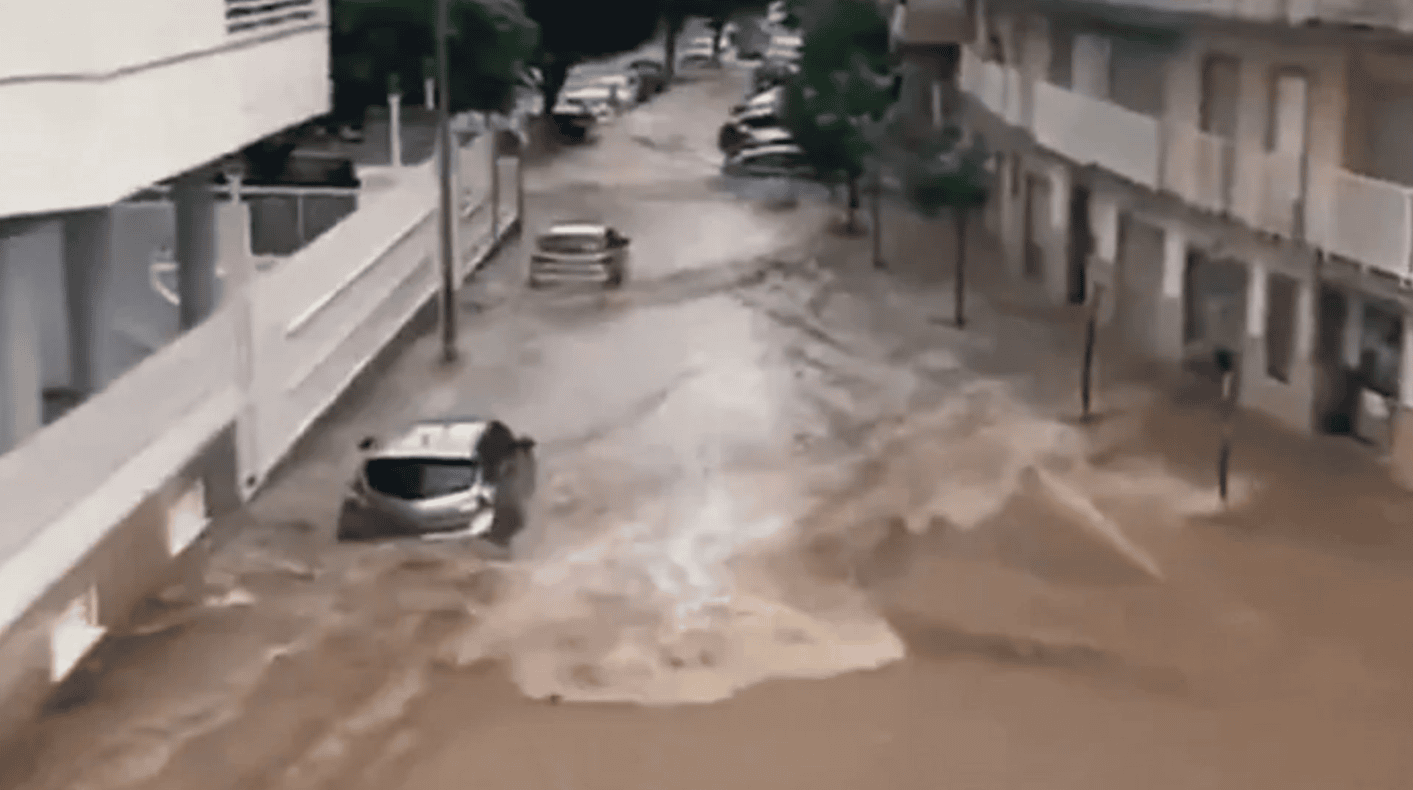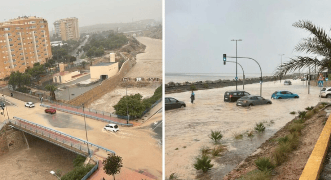 Снимките споделени на социјалните мрежи покажуваат како обилните дождови веќе влијаат врз крајбрежните региони во источна Шпанија, со видеа што покажуваат автомобили како се обидуваат да возат по поплавените патишта и волонтери како чистат вода и кал од улиците.
