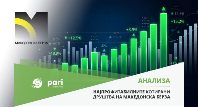 Најпрофитабилните десет компании што котираат на Македонска берза лани оствариле вкупна добивка од 365,94 милиони. Заеднички постигнатиот позитивен финансиски резултат е зголемен за 10,9 насто во однос на претходната година. Моторот на профитот е банкарската дејност. На листата водечки друштва се рангирани четири банки, по две компании од областа на индустријата и на трговијата со горива, и по една од фармацијата и од услужните дејности.