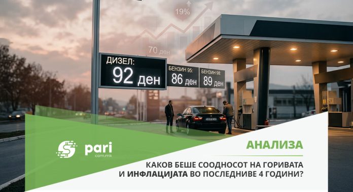 Најсилната врска меѓу цените на горивата и инфлацијата се виде во 2022 година, кога по почетокот на руската инвазија на Украина нагло поскапи суровата нафта Брент. Во Македонија тогаш цената на бензинот и на дизелот надмина 100 денари за литар.