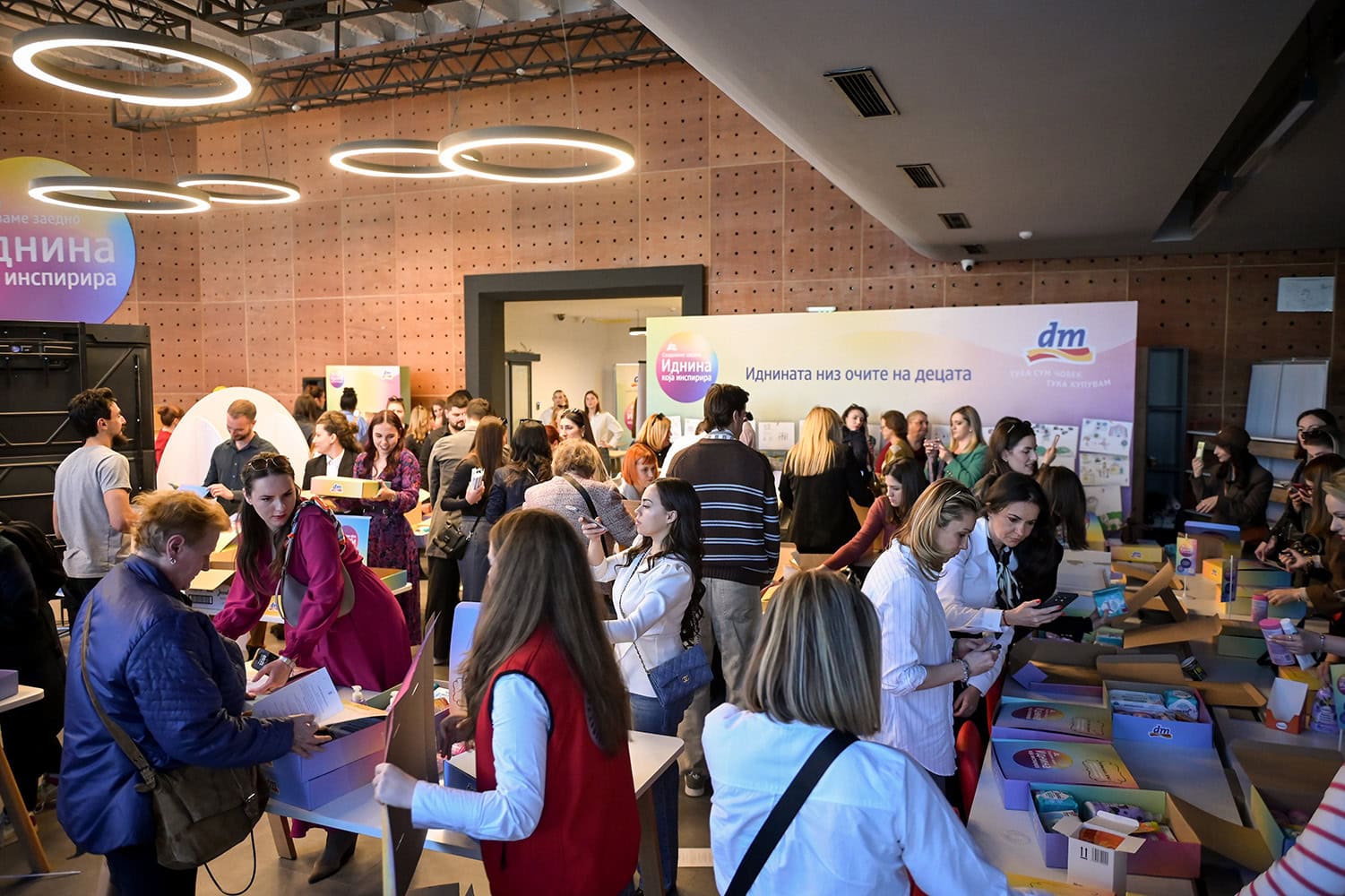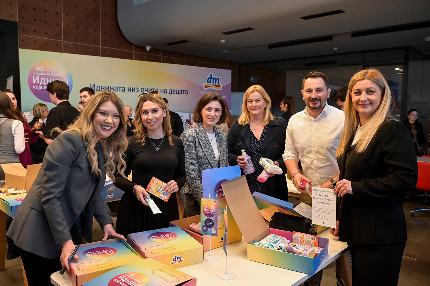 Во рамки на настанот повеќе од 100 новинари, инфлуенсери, соработници, волонтери и претставници на организации, учествуваа во волонтерска акција за подготовка и пакување на пакети со dm производи, наменети за Кризен центар „Надеж“, и Националната мрежа против насилство врз жени и семејно насилство.
