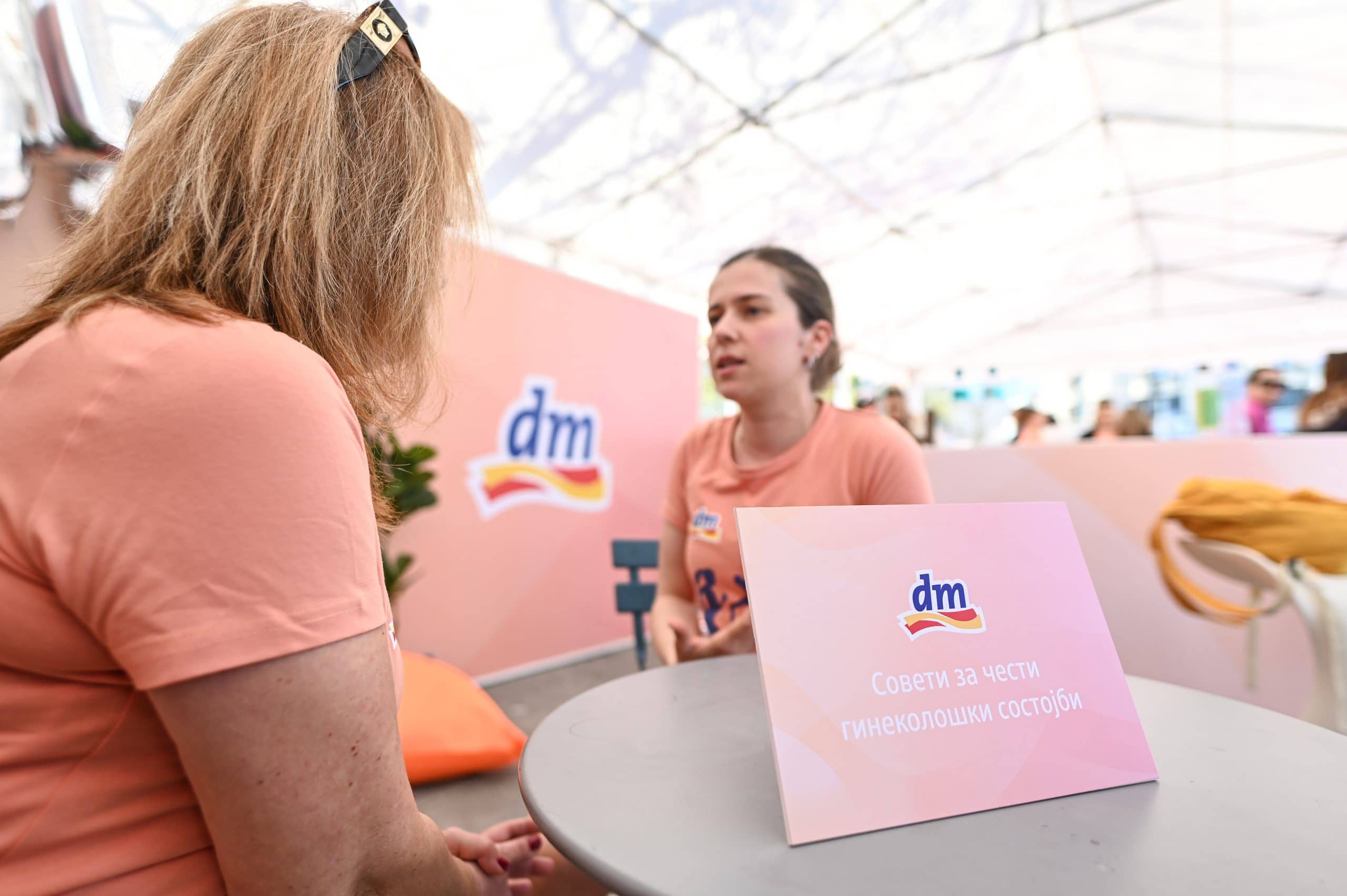 Како дел од настанот, dm беше присутен со свое катче кај фонтаната во Градскиот парк, каде учесничките и посетителите имаа можност бесплатно да добијат совети за женското здравје од специјалисти гинеколози, да дегустираат dmBio безалкохолни коктели и да се освежат со производи за дополнителна поддршка пред и по трката.