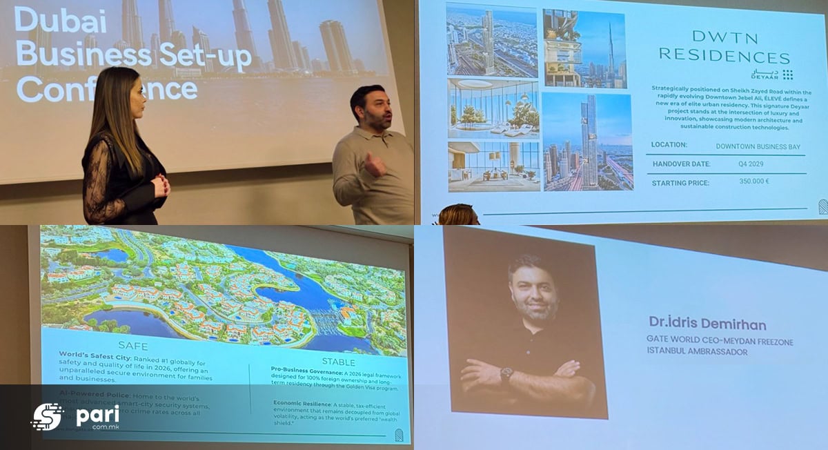 Можности за вложувања имаат и инвеститорите од Македонија. На пазарот на недвижности во Обединетите Арапски Емирати се нудат неколку нови станбени проекти на различни локаци, со почетни цени од 170 илјади до половина милион евра и со рокови за изградба во 2027, односно 2030 година. Во што може да се вложи, под кои услови и какви се придобивките од инвестициската активност во Дубаи – беше претставено на презентацијата што се одржа во Скопје пред потенцијалните интересенти.