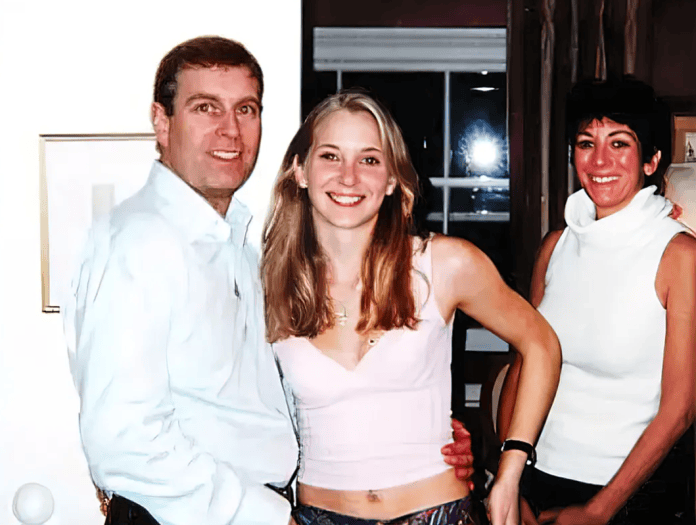 (Фото: Принцот Ендру со Виџинија Џуфре, фотографија од архива на Министерството за правда на САД)