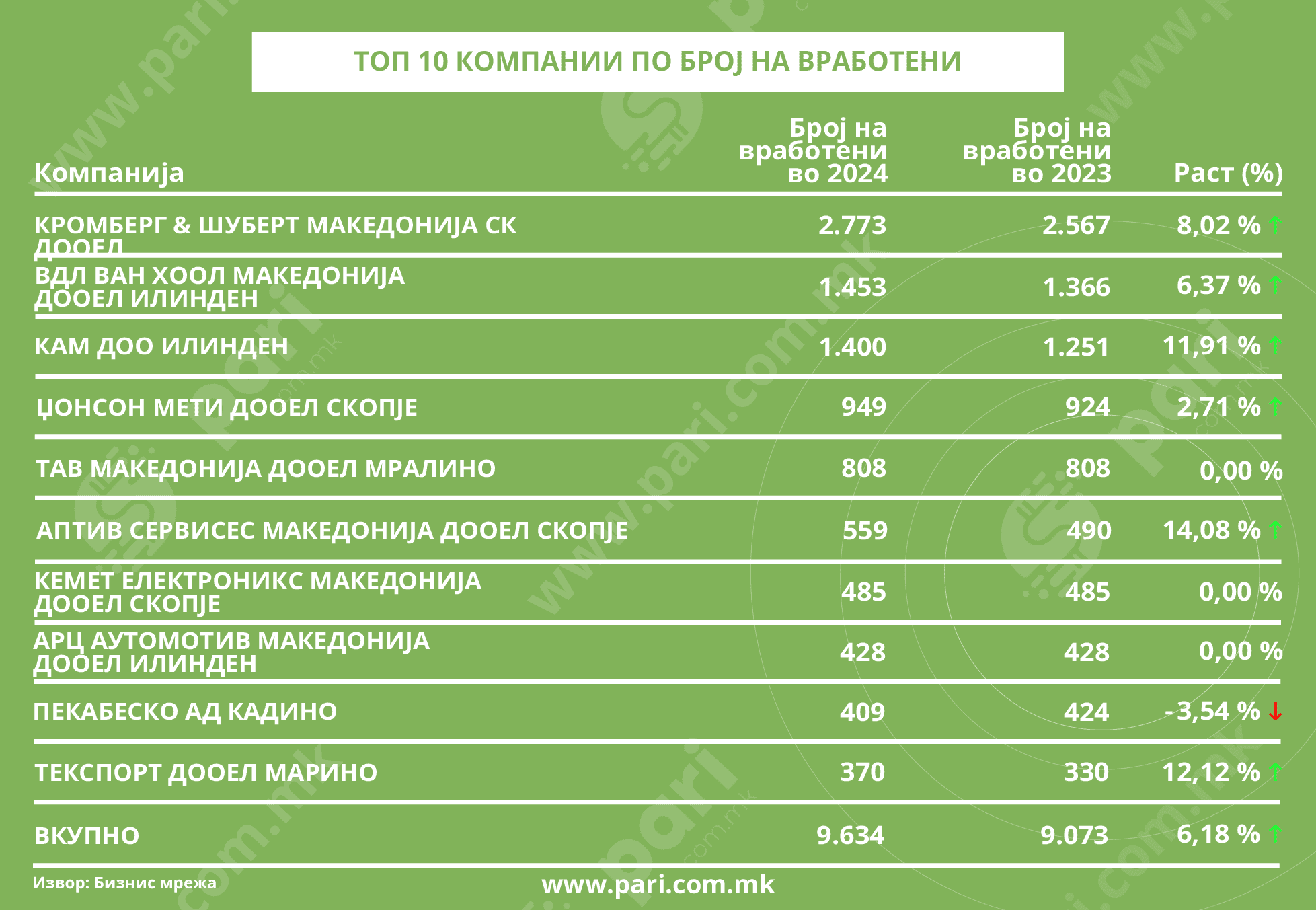 Најголем работодавач останува Кромберг & Шуберт, каде што се пополнети 2.773 работни места. Повеќе од илјада вработени има во Ван Хоол (1.453) и во КАМ (1.400).