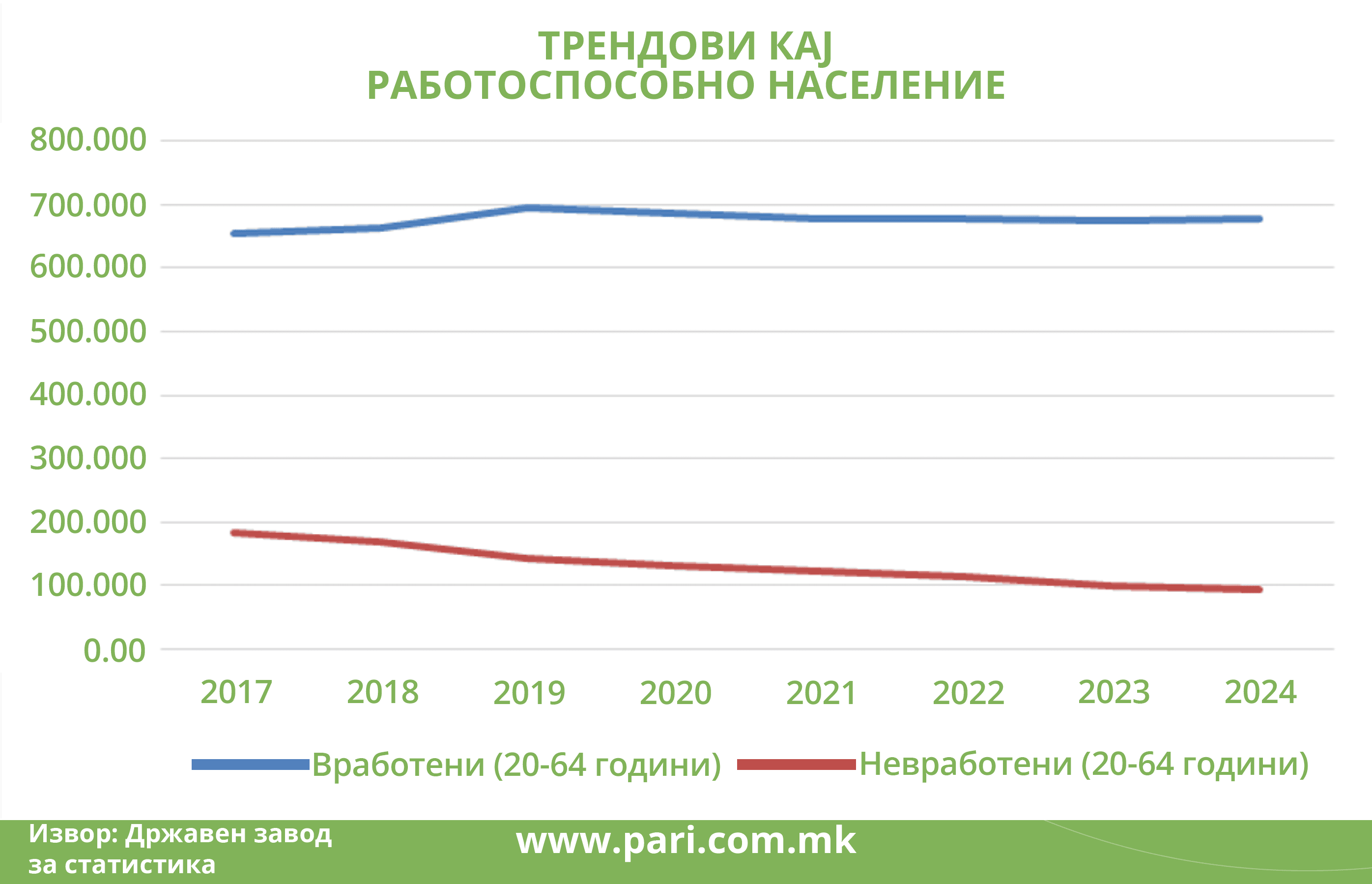 Во последните години, официјалните податоци покажуваат тренд што на површина ветува стабилизација. Сепак, кога подлабоко ќе се погледне структурата на пазарот на труд, станува јасно дека дел од работоспособното население повеќе не се појавува ниту како вработено, ниту како невработено. Тие не се во пензија, не се дел од помладата популација – тие едноставно ги нема во евиденциите.