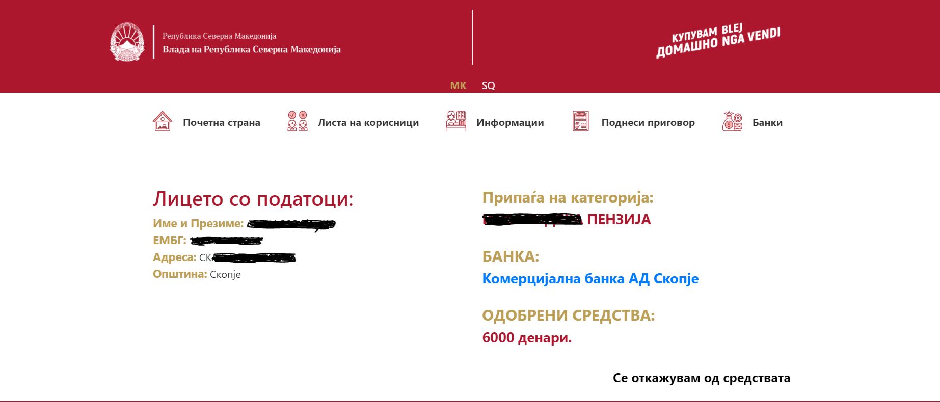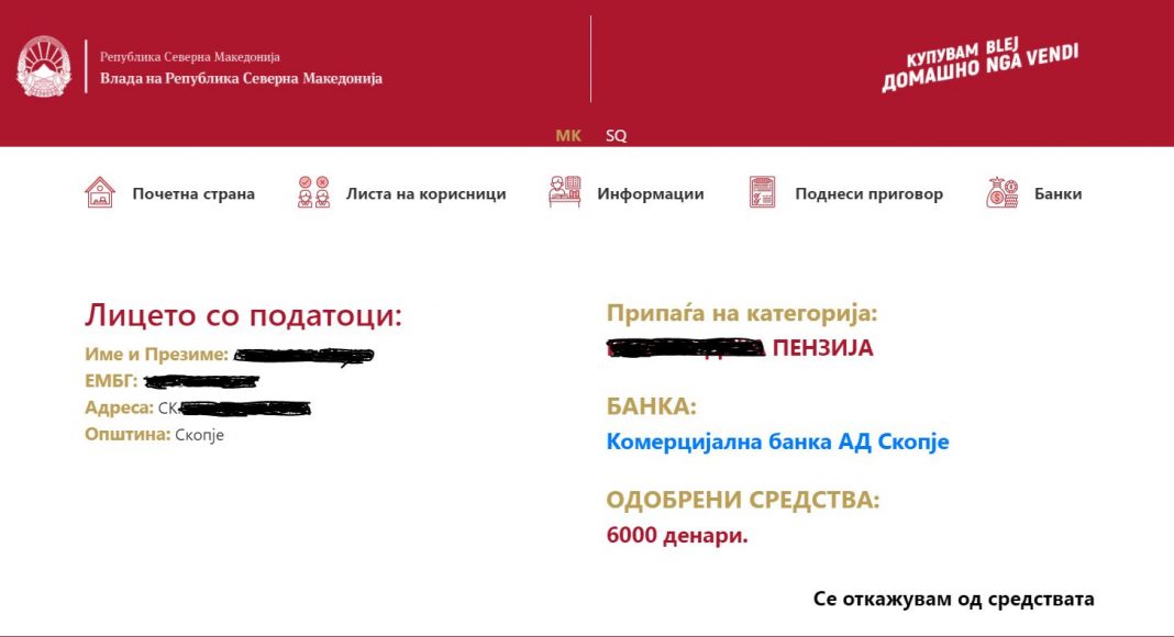 Посетете ја интернет страницата kupuvamdomasno.gov.mk, и проверете дали исполнувате услови, за да добиете 6000 денари. Проверката се врши по следнава насока: Внесете го вашиот ЕМБГ, селектирајте го полето i’m not a robot, и потоа кликнете на Пребарај.