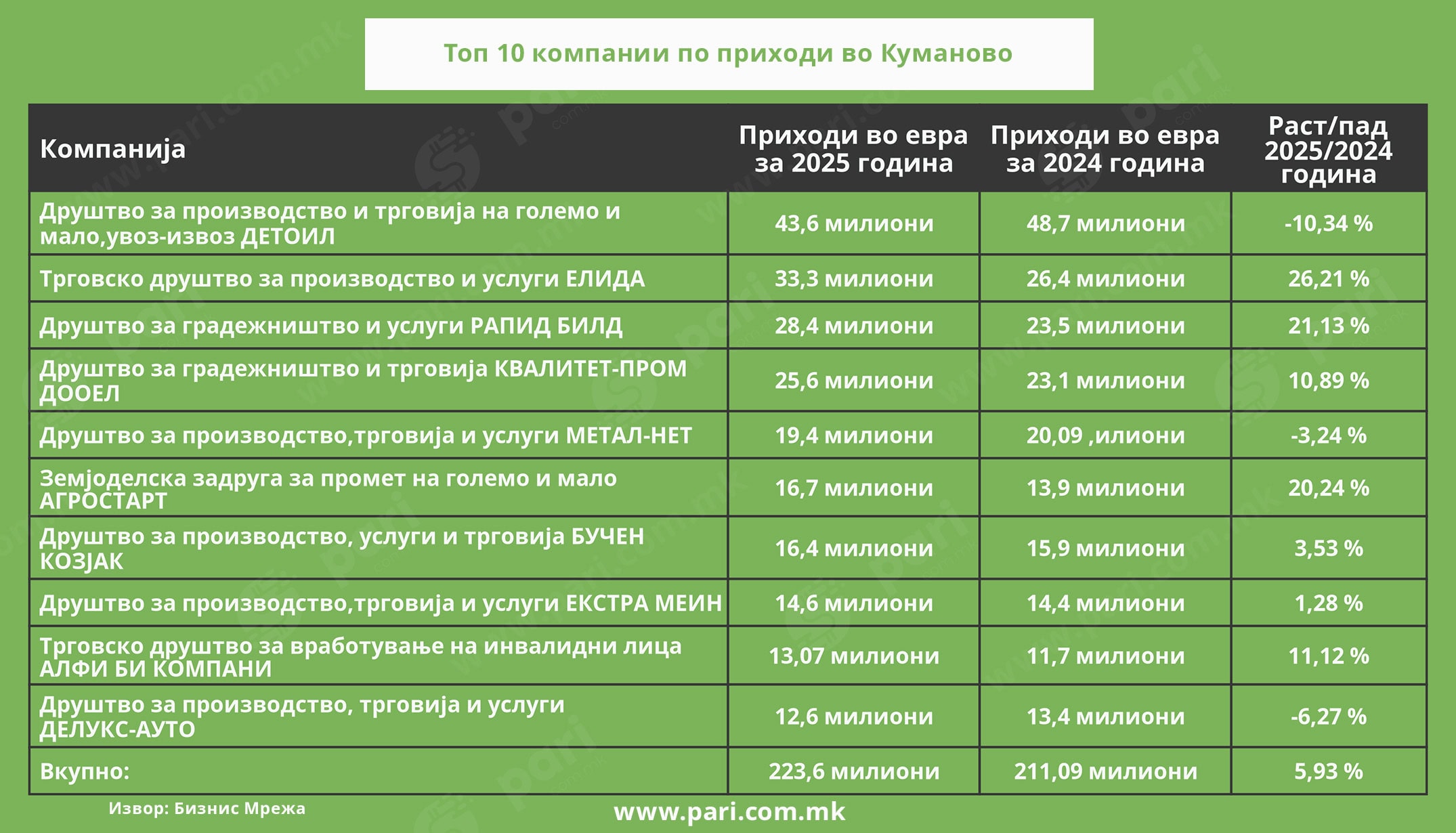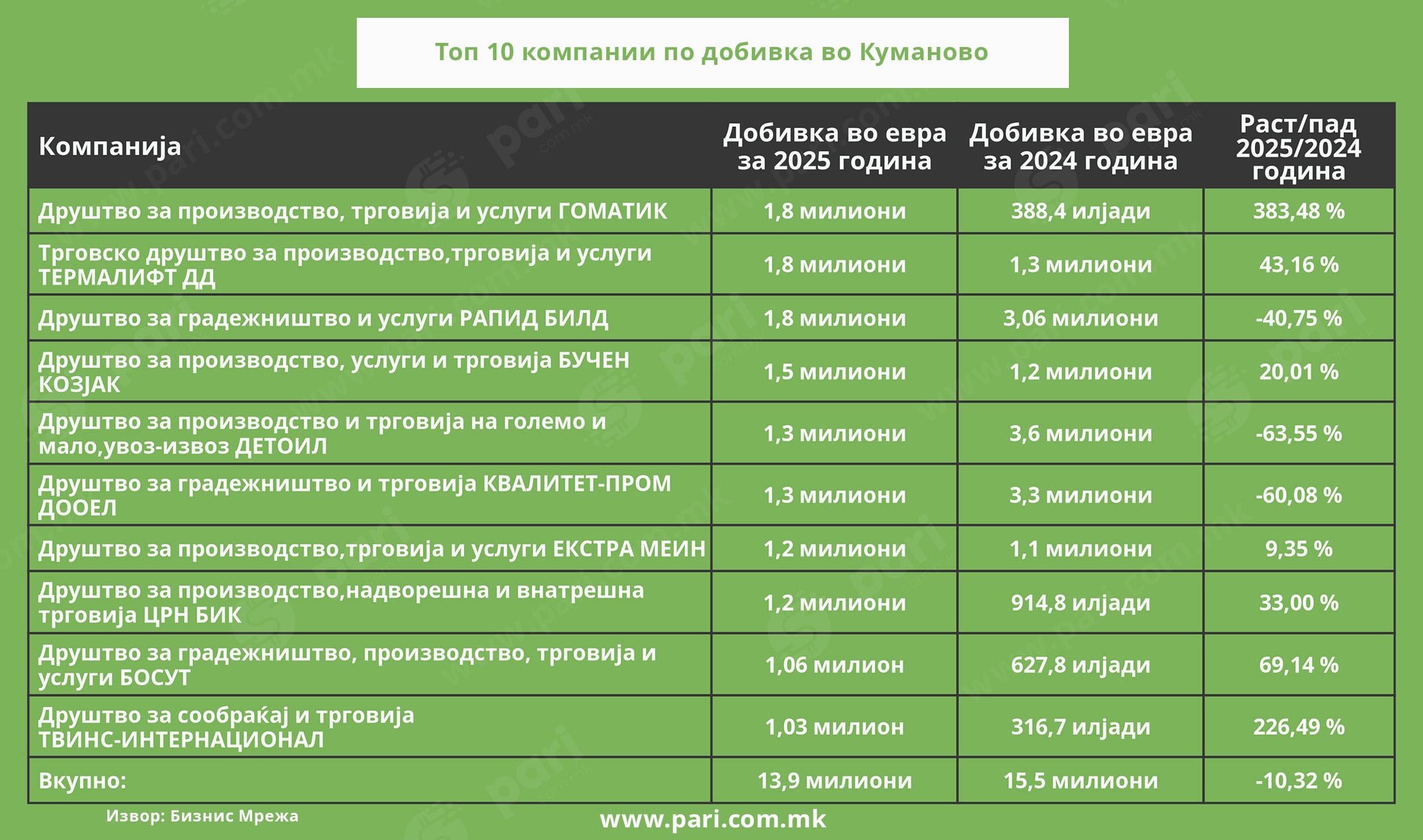 Што се случува во кумановската економија и на кои компании се потпира, може да се согледа од анализата што ја подготви порталот Пари во соработка со Бизнис Мрежа.
