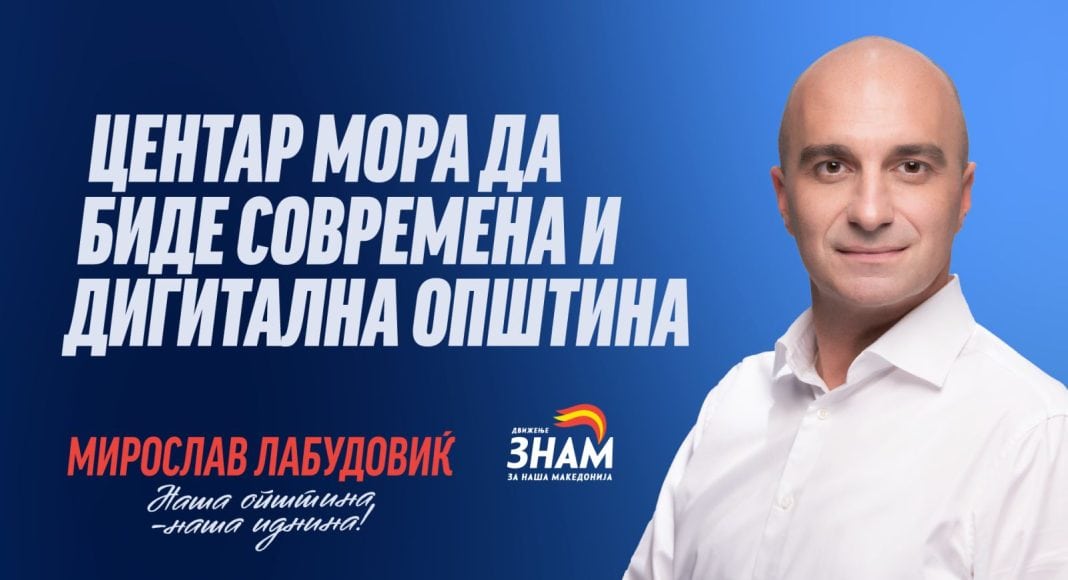 Кандидатот за градоначалник на Општина Центар од Движењето ЗНАМ – За наша Македонија, Мирослав Лабудовиќ, најави дека еден од неговите најважни приоритети ќе биде воведување на целосно нов систем на дигитална и транспарентна администрација.