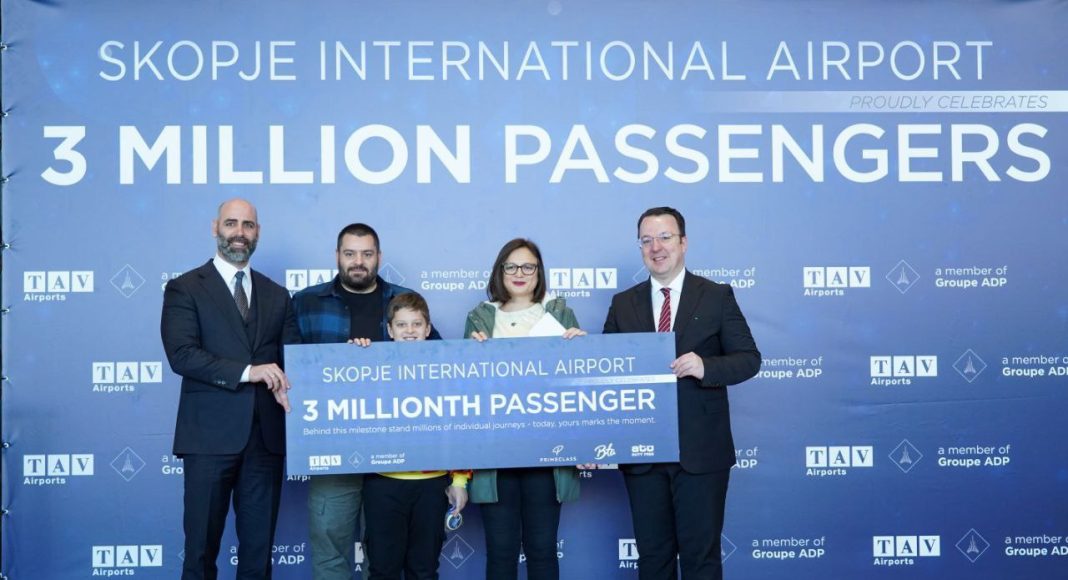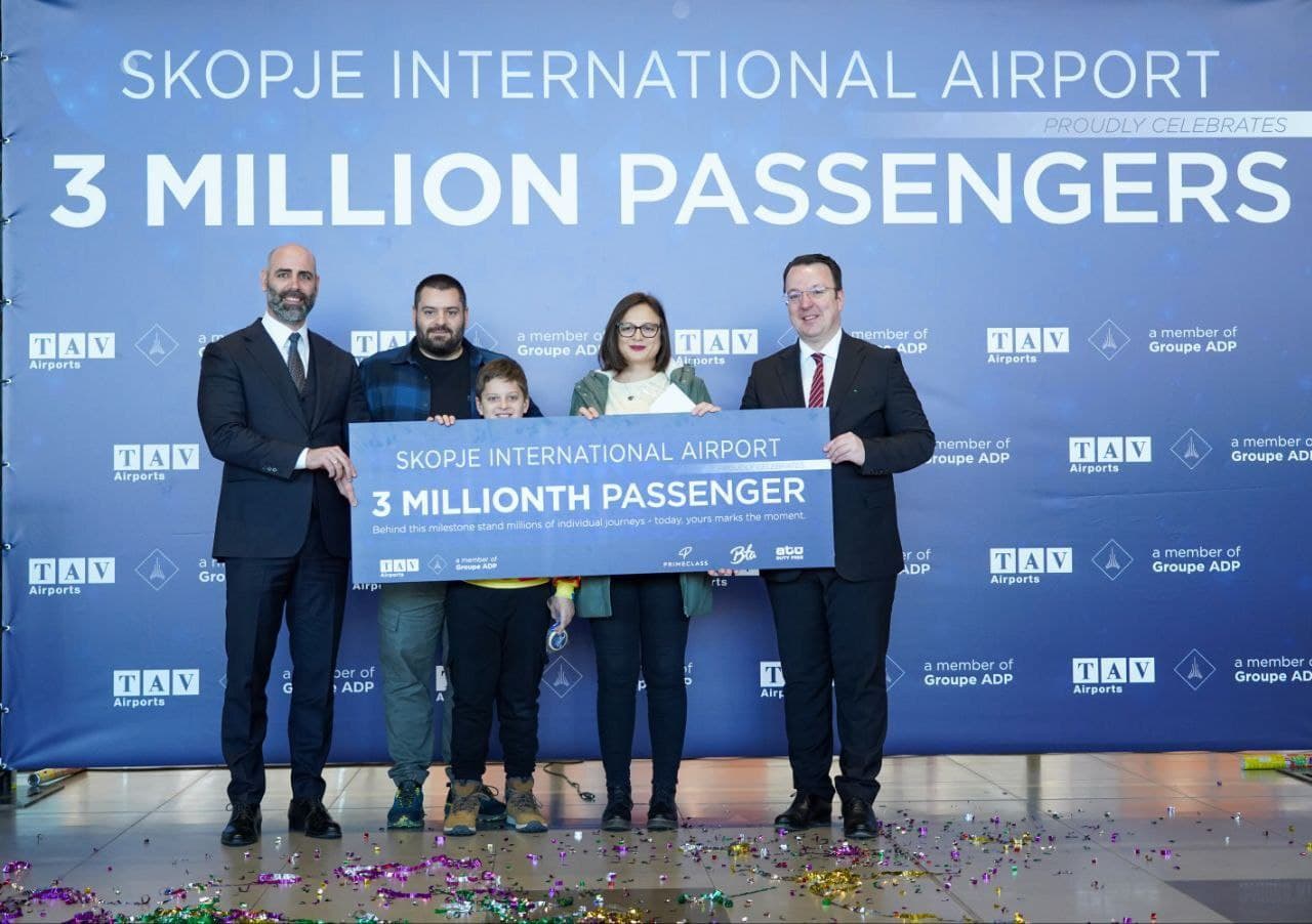 „Драго ми е што ова семејство што денеска патува до Бари ја има среќата да биде тримилионитиот патник на скопскиот аеродром. Ако споредиме со нешто што се случуваше пред 10, 20 и 30 години, ова би било незамисливо. Со ова, аеродромот во Скопје станува центар за целиот регион“, рече Николоски, додавајќи дека бројноста на патниците е во континуиран раст, што се одразува и на туризмот.