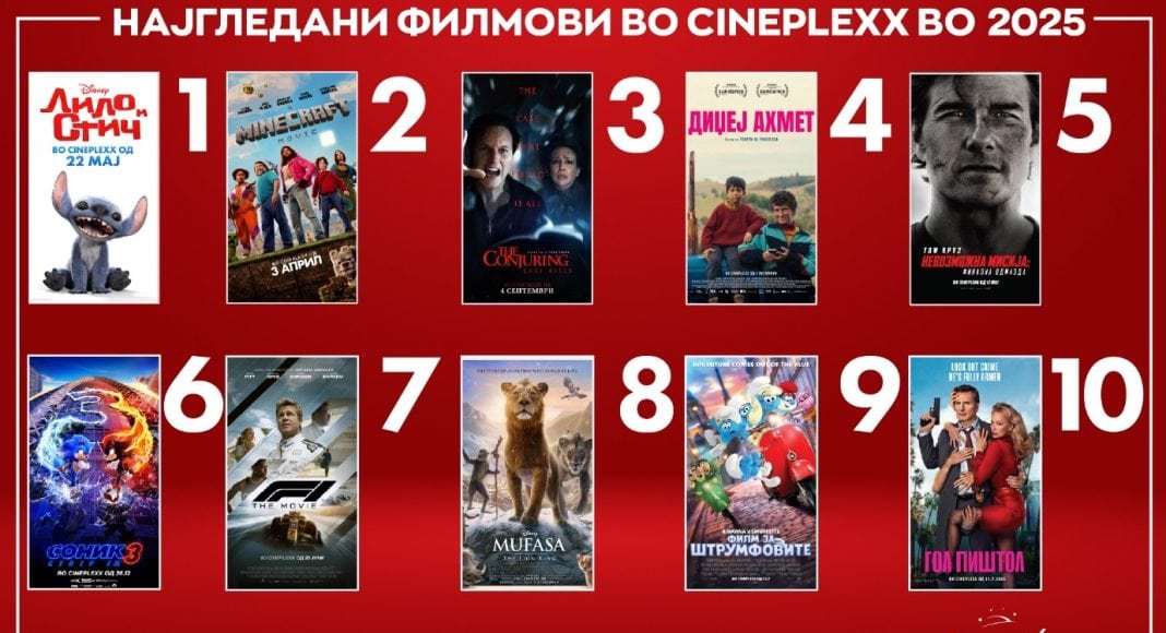Меѓу најуспешните проекции во 2025 година, во топ 10 најгледани филмови се најде и македонското остварување Диџеј Ахмет, што означи една значајна пресвртница – домашен филм што се избори за своја позиција меѓу најгледаните наслови на годината.