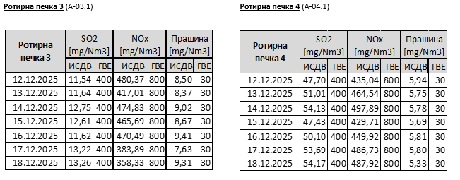 - Емисиите од работата на ТИТАН УСЈЕ постојано се под граничните вредности определени со Закон