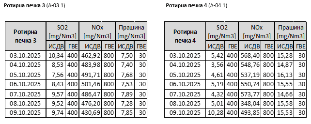 - Емисиите од работата на ТИТАН УСЈЕ постојано се под граничните вредности определени со Закон