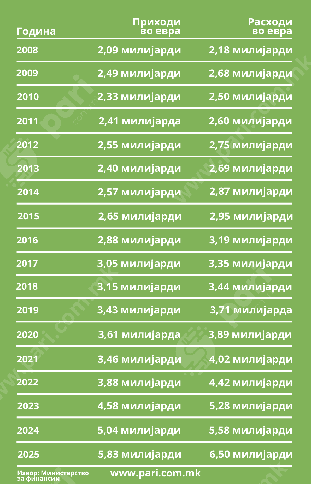 Само од 2008 па заклучно со оваа 2025 година, од државната каса излегле 62,07 милијарди евра. Сумата е пресметана врз база на основните буџети, без ребалансите што се неизоставна практика. Што добија за возврат државата и граѓаните?