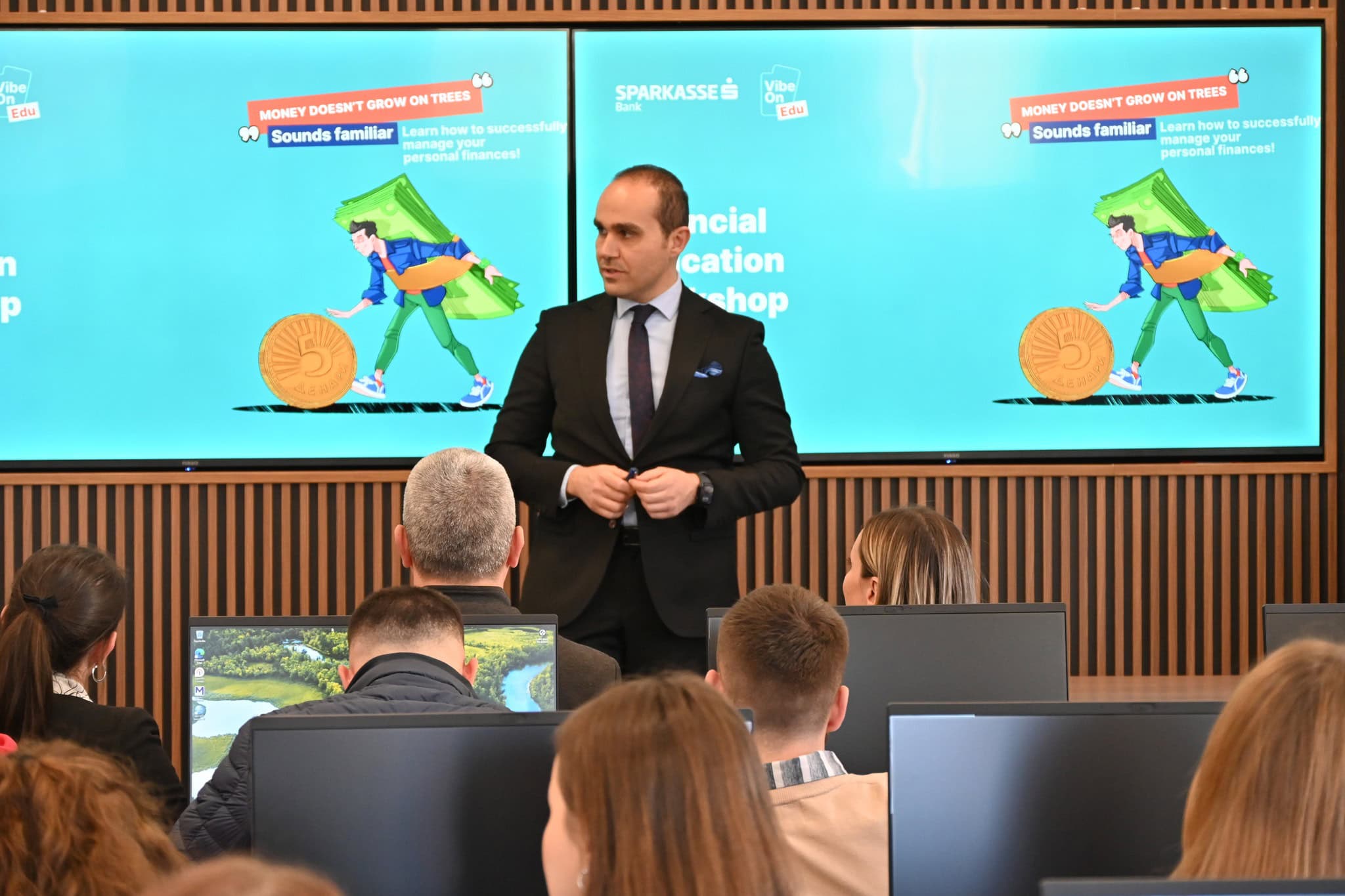 Шпаркасе Банка, во соработка со BISTLAB | Balkan Economy and Finance Laboratory и International Balkan University, организираше работилница за финансиска едукација, насочена кон подигнување на финансиската писменост на студентите преку првата и единствена платформа за финансиска едукација на млади – www.vibeonedu.mk.