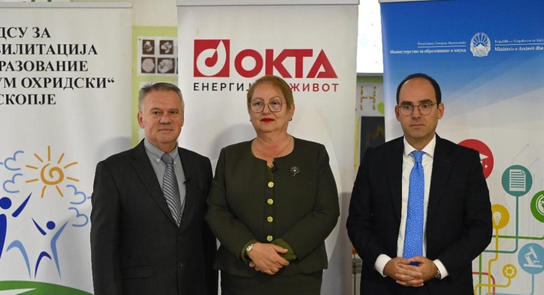 „ОКТА е меѓу партнерите на МОН кои помагаат за унапредување на образовниот систем. Во изминатите неколку месеци инвестираше во фотоволтаични системи во неколку образовни установи, меѓу кои и три државни училишта – „Наум Охридски“ во Скопје, „Искра“ во Штип и „Кочо Рацин“ во Битола. Овие системи ќе обезбедат чиста енергија и заштеда на средства, што ќе може да се пренаменуваат за други важни потреби – за подобрување на инфраструктурата, за набавка на нагледни средства и асистивна технологија“, рече Јаневска.