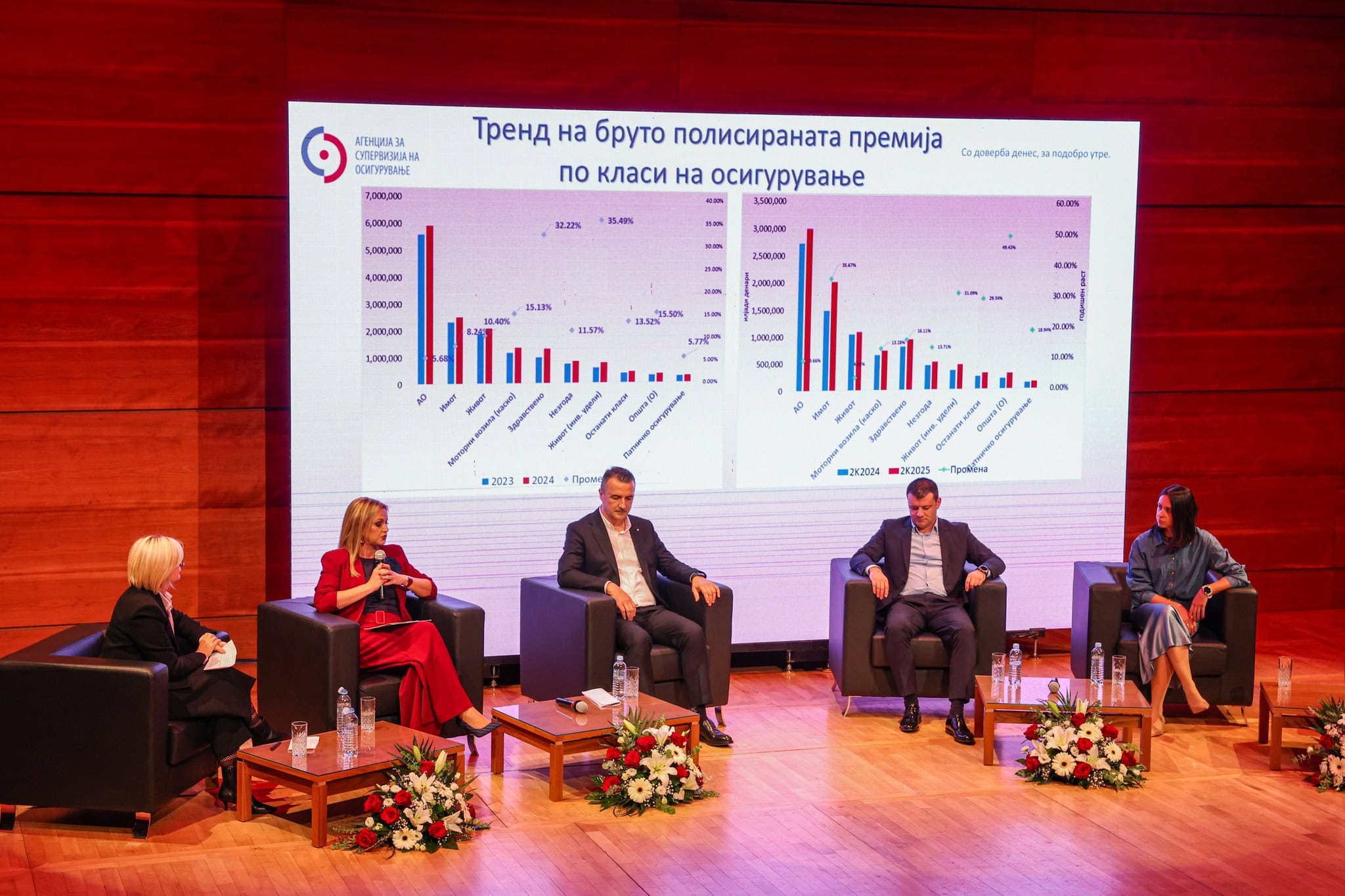 Во тие рамки се дискутираше за резултатите постигнати на осигурителниот пазар, со фокус на идните трендови и иновации, како и новите предизвици. Оттука и произлезе мислењето дека во случајот на Македонија, постигнувањата се ограничени од недоволното ниво на финансиска писменост, како и од нискиот стандард. Исто така, беше посочено дека во светот има најразлични видови осигурување, се осигурува се што е од важност за луѓето, па дури има и осигурување од лоши оценки, наменето за учениците. Наспроти тоа, кај нас се уште се доминантни продуктите од традиционалното осигурување. Овој панел беше насловен „Актуелни трендови и можности за идeн раст и развој на осигурителниот сектор“. Го модерираше Маја Парнарџиева – Змејкова, раководител на стручната служба за супервизија во АСО, а учествуваа Александра Дранговска и Горан Здравковски, членови на Совет на експерти на АСО; Бобан Томески, генерален директор на Кроација осигурување – живот; Салаудин Имами, член на Управниот одбор на Граве осигурување – неживот; и Ана Секуловска, продукт менаџер за интернационални продукти од областа на осигурување неживот.