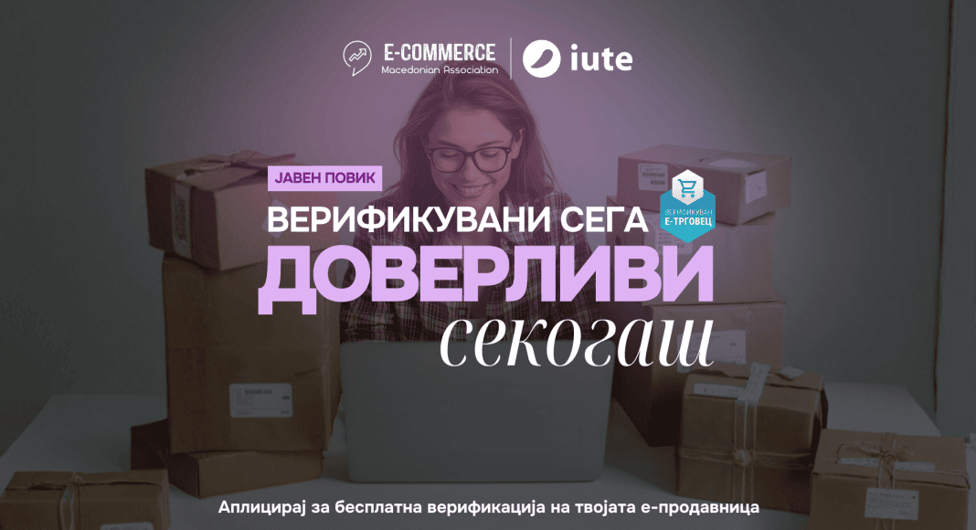 Асоцијацијата за е-трговија (АЕТСМ) објавува јавен повик за бесплатни верификации на е-продавници за стекнување со симболот на доверба во е-трговијата – Беџ за верификуван е-трговец, во рамки на кампањата „Верификувани сега, доверливи секогаш“, која се реализира со поддршка на ИУТЕ Македонија.