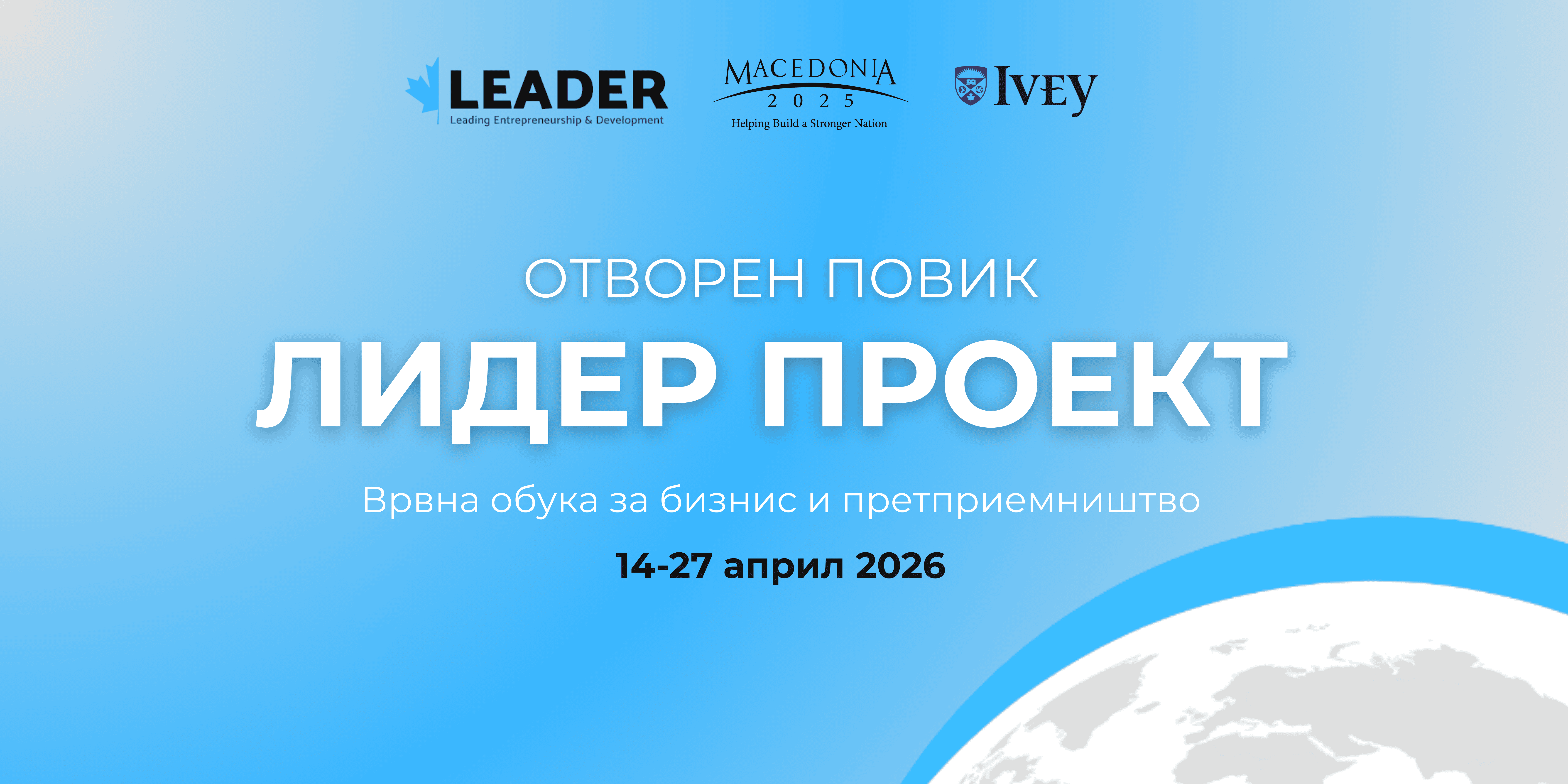 Македонија2025 објави отворен повик за проектот ЛИДЕР, кој по 18. пат ќе се одржи од 14 до 27 април 2026 година во Скопје. Проектот се реализира во соработка со Ivey Business School – Western University, кои ја организираат оваа програма уште од 1991 година.