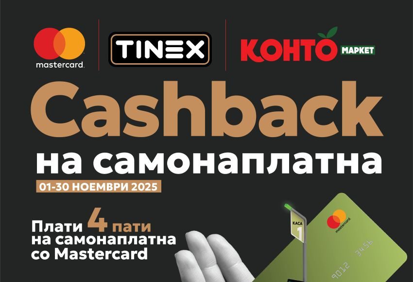 Со секое плаќање со Mastercard дебитна или кредитна картичка, на касите за самонаплата во одбраните маркети на ТИНЕКС и сите Конто маркети, корисниците добиваат можност да остворат поврат на средства (кешбек).