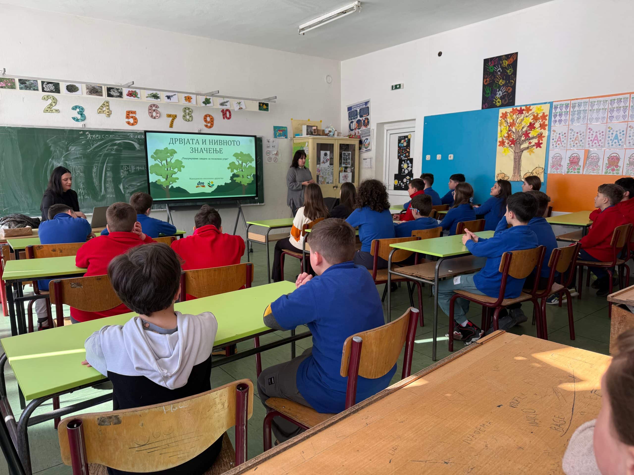 Садењето се одвиваше во прекрасна и инспиративна атмосфера, исполнета со активно учество на децата. Учениците со голема радост и внимателност учествуваа во секој дел од процесот, што им овозможи да стекнат практични знаења и да се поврзат со природата на еден непосреден начин. Тие покажуваа вистински интерес, поставувајќи многу прашања за важноста на зачувувањето на зеленилото и животната средина, а поддршката од експертите од Македонското еколошко друштво (МЕД) придонесе ова искуство да биде и едукативно и мотивирачко – активностите беа збогатени со едукативни предавања кои ги реализираа експерти од Македонското еколошко друштво (МЕД), со цел учениците преку непосреден контакт со природата и садењето да стекнат знаења за значењето и важноста од грижата за животната средина.