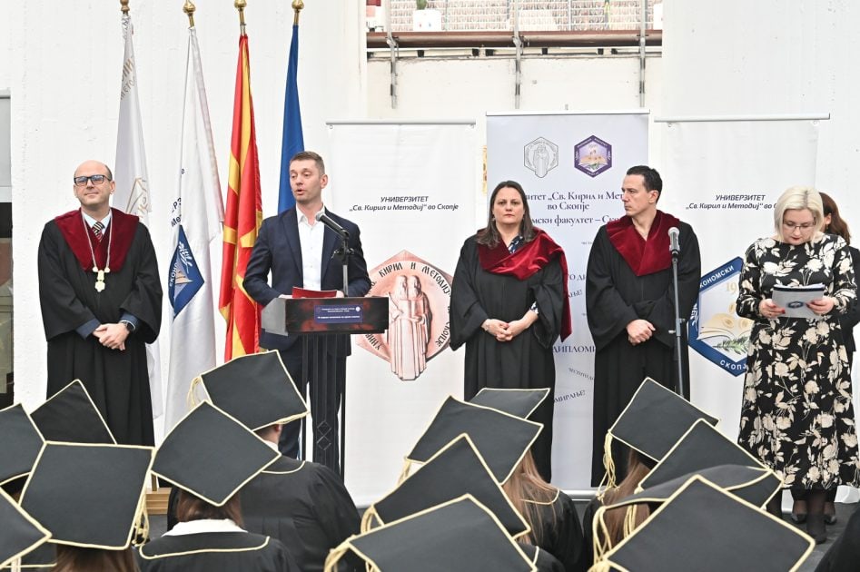 Во присуство на професори, студенти и гости, Милан Дамчевски, член на Управниот одбор на ПроКредит Банка, им се обрати на дипломците со инспиративен говор во кој ја сподели својата лична приказна како поранешен студент токму на овој факултет и им посака да бидат амбициозни, храбри, љубопитни и да не забораваат дека вистинскиот успех започнува од внатрешната верба и од интегритетот.