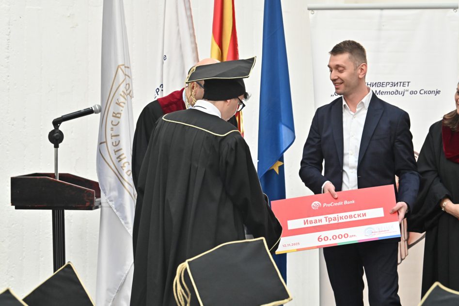 ПроКредит како институција која ги вреднува знаењето, интегритетот и развојот на потенцијалот, на десетте најуспешни дипломци ќе им даде можност за вработување во Банката, а дополнително на најуспешните три студенти им додели финансиска награда.