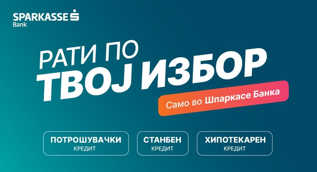 Повеќе контрола, помалку грижи – нов кредитен модел на Шпаркасе Банка. Со „Рати по твој избор!“, Шпаркасе Банка на своите клиенти им нуди вистинска финансиска флексибилност и чувство на сигурност кога им се најпотребни. Оваа флексибилност на клиентите им овозможува да направат избор на висината на ратата во оние месеци во кои тие имаат потреба и/или можност да плаќаат повисока или пониска месечна рата. Наместо фиксна висина на рата што не се менува, клиентите може претходно да изберат периоди кога сакаат пониска или повисока рата, а со фиксна камата.
