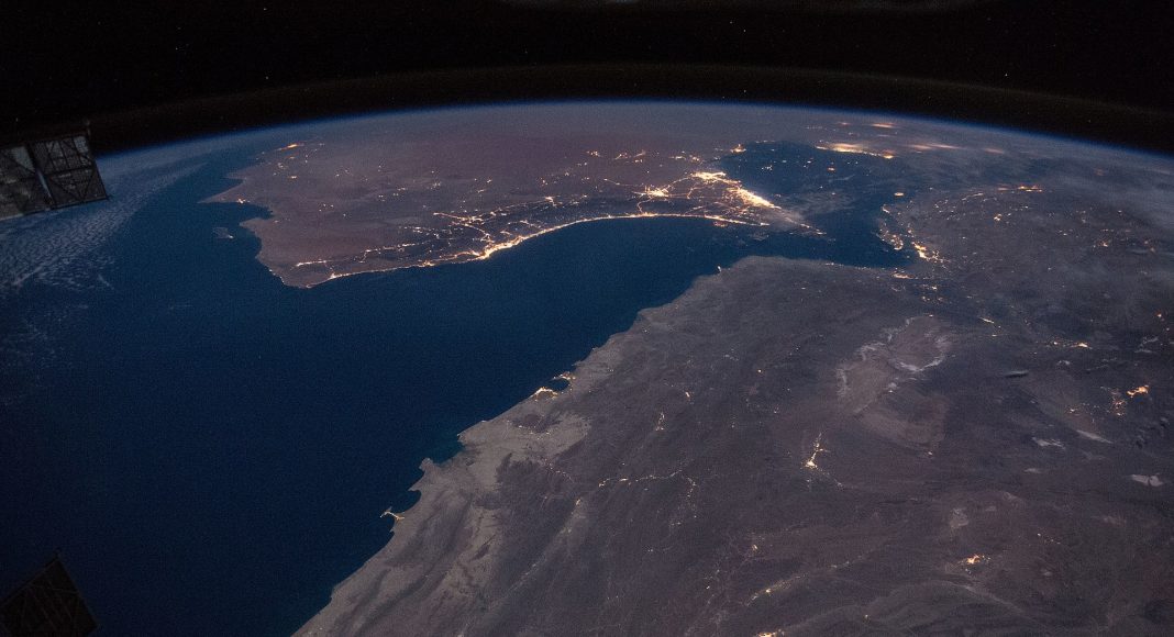 (Фото: Омански залив со Ормудскиот теснец, НАСА)