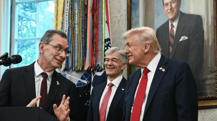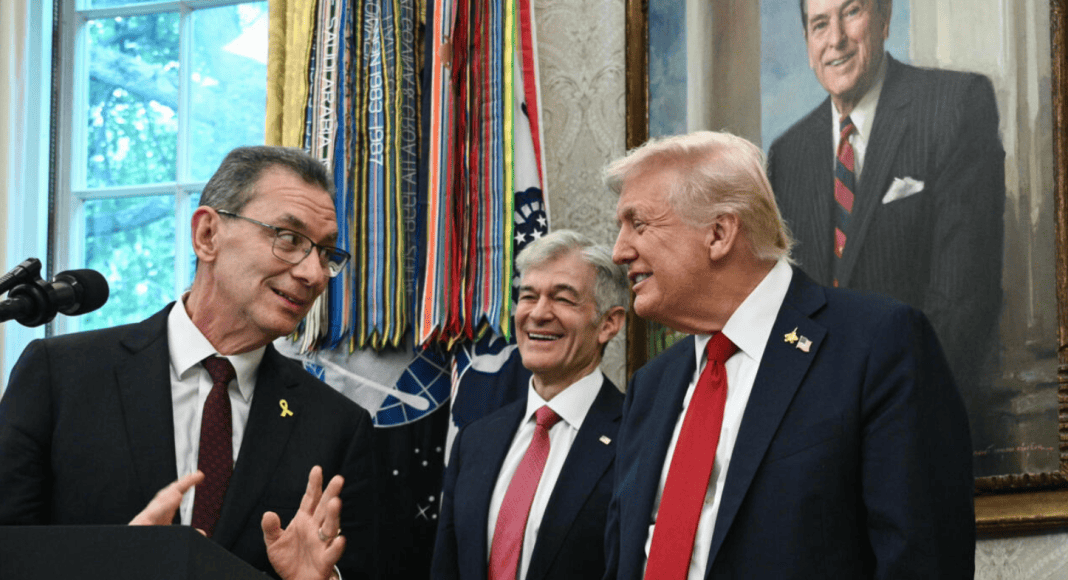 Претседателот Трамп, заедно со директорот на Националните институти за здравство Џеј Батачарја и секретарот за здравство и човечки услуги Роберт Ф. Кенеди Џуниор, зборуваше за извршна наредба насочена кон намалување на цената на лековите што се издаваат на рецепт.