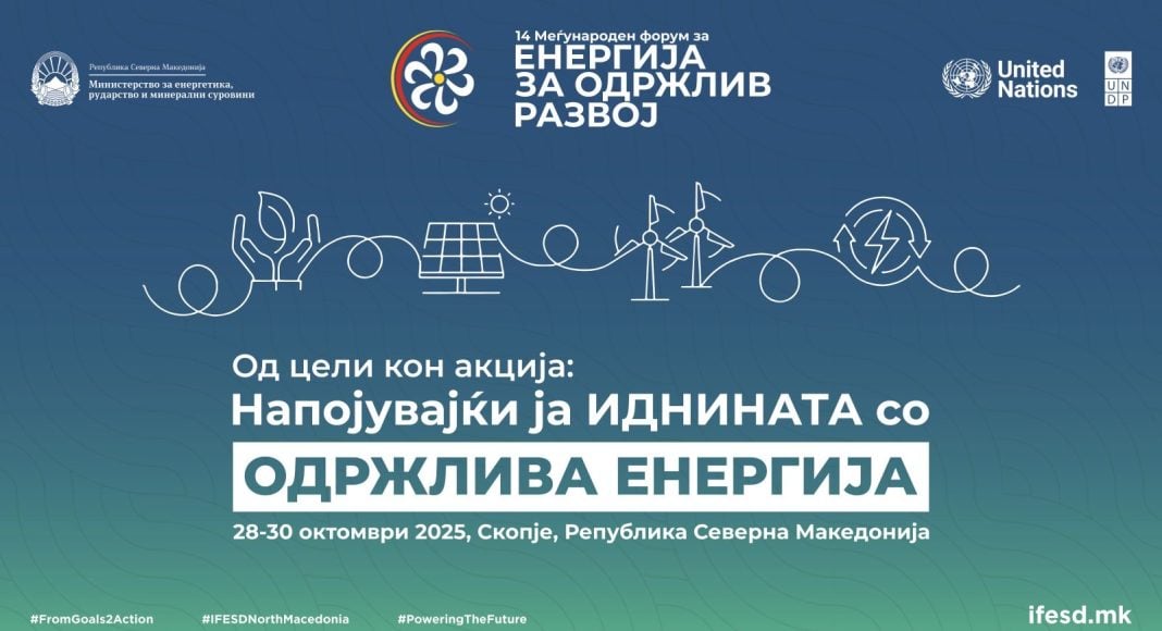 Во периодот од 28 до 30 октомври 2025 година, во Скопје ќе се одржи 14-тиот Меѓународен форум за енергија за одржлив развој (IFESD-14), под наслов „Од цели кон акција: Напојувајќи ја иднината со одржлива енергија / From Goals to Action: Powering the Future with Sustainable Energy“.