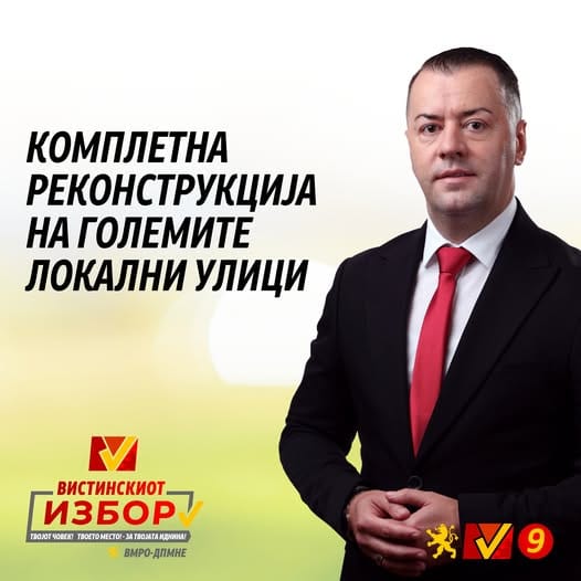 Ќе ги реконструираме улиците Лазар Поп Трајков – Автокоманда; Анри Барбис и Карл Хрон – Триангла; Среќко Пужалка и Финска – Ченто; Пехчевска – Хиподром; 2 и 18 – Инџиково; Трајко Китанчев – Ченто; 10 и 3 – Јурумлери“.