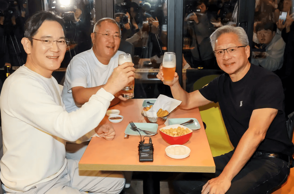 Во една скромна продавница за пржено пилешко во јужен Сеул, главните директори на Nvidia, Samsung Electronics и Hyundai Motor одржаа неформален состанок вечерта на 30 октомври, објави Korea JoongAng Daily.