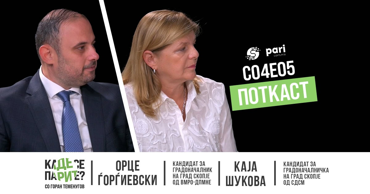 Смет, јавен превоз, урбанизам. Три теми, три отворени рани на главниот град. Кандидатите за градоначалник на Град Скопје од редовите на СДСМ и на ВМРО-ДПМНЕ, Каја Шукова и Орце Ѓорѓиевски гостуваат во поткастот „Каде се парите?“.