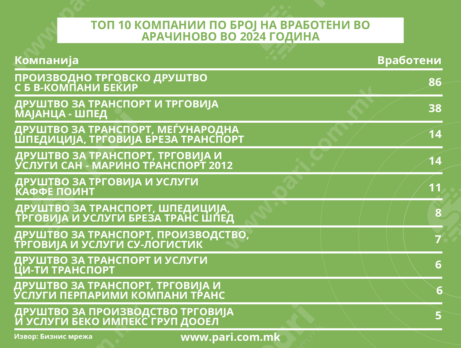 НАЈГОЛЕМИТЕ РАБОТОДАВАЧИ ОД АРАЧИНОВО ИМААТ 195 ВРАБОТЕНИ