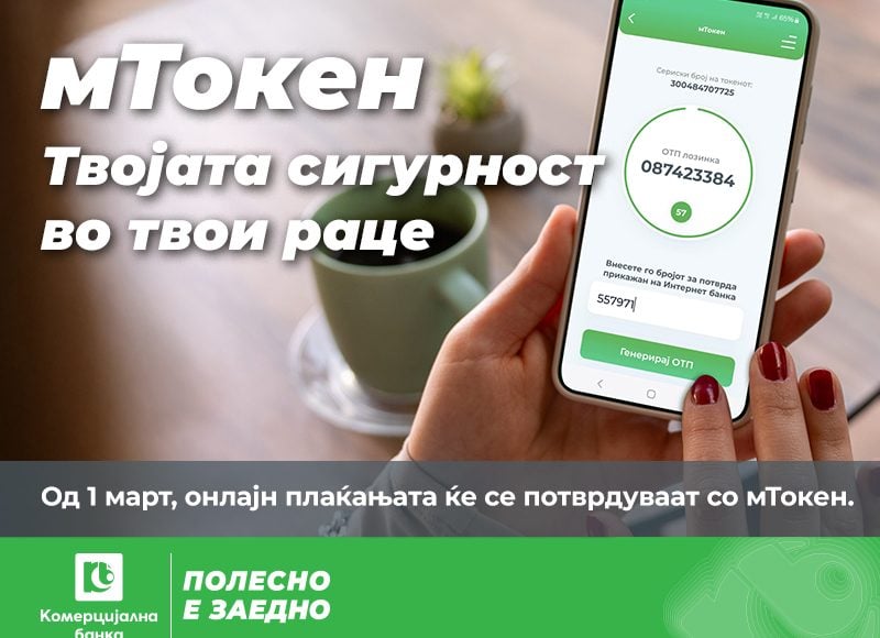 Од 1 март, интернет плаќањата со картичка ќе се потврдуваат со единствен безбедносен код генериран преку бесплатната апликација мТокен, наместо како досега со СМС код. Сите трансакции преку мБанка, пак, ќе се потврдуваат со ПИН или со биометриска автентикација, кои се користат и при најава на апликацијата.