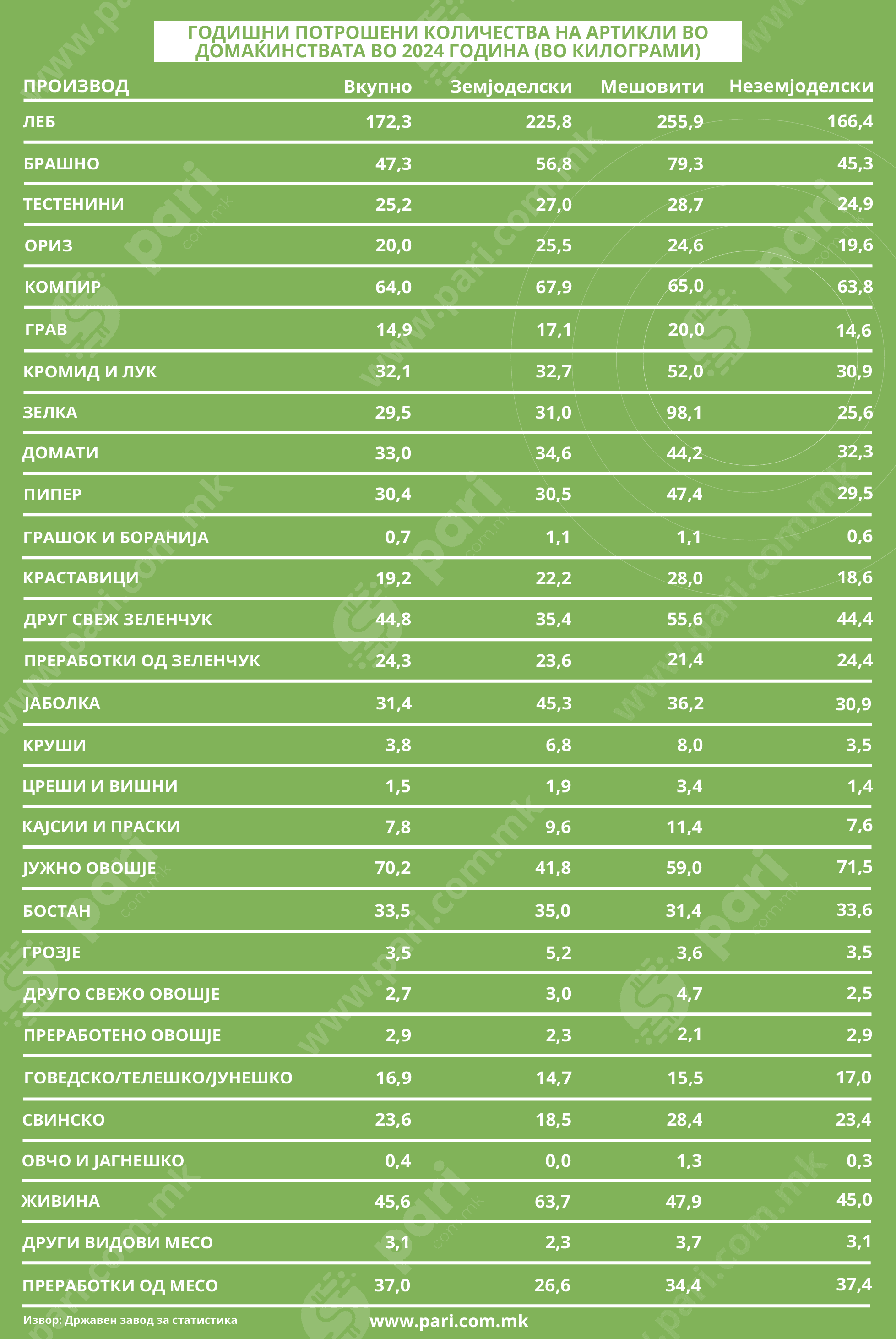 Дома Земјоделските семејства јадат повеќе леб и зеленчук, а градските повеќе месо и салами Tabela 1 prehranbeni naviki